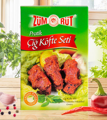 • 1 çay kaşığı ZÜMRÜT karabiber (isteğe göre eklenmelidir, çiğ köfte harcında mevcuttur)
